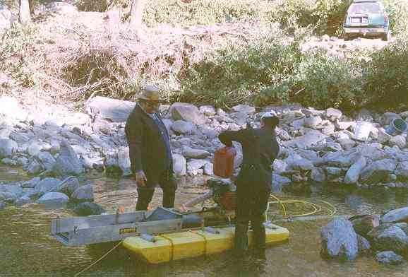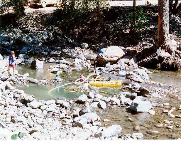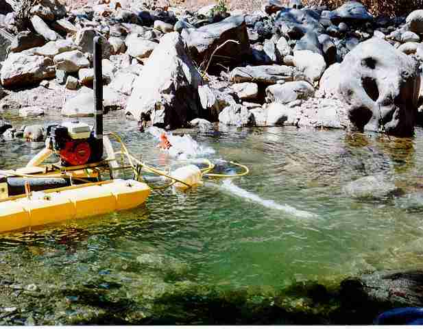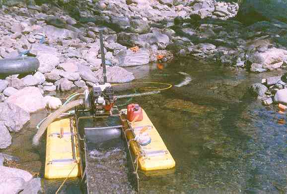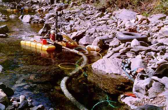 This dredge works by "vacuuming" up the gravels in the stream and