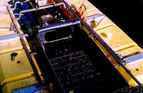 dry washing - notice dirt vibrating over the riffles!